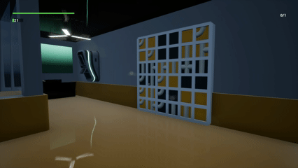 The elevator has been powered off and the generator must be refueled manually with Unobtainium cores which will be found inside the storage room. Once the power is back up, the player will need to repair the pipe system and activate the decontamination sequence in the administrator's office before grabbing a keycard and taking the elevator to the next level.