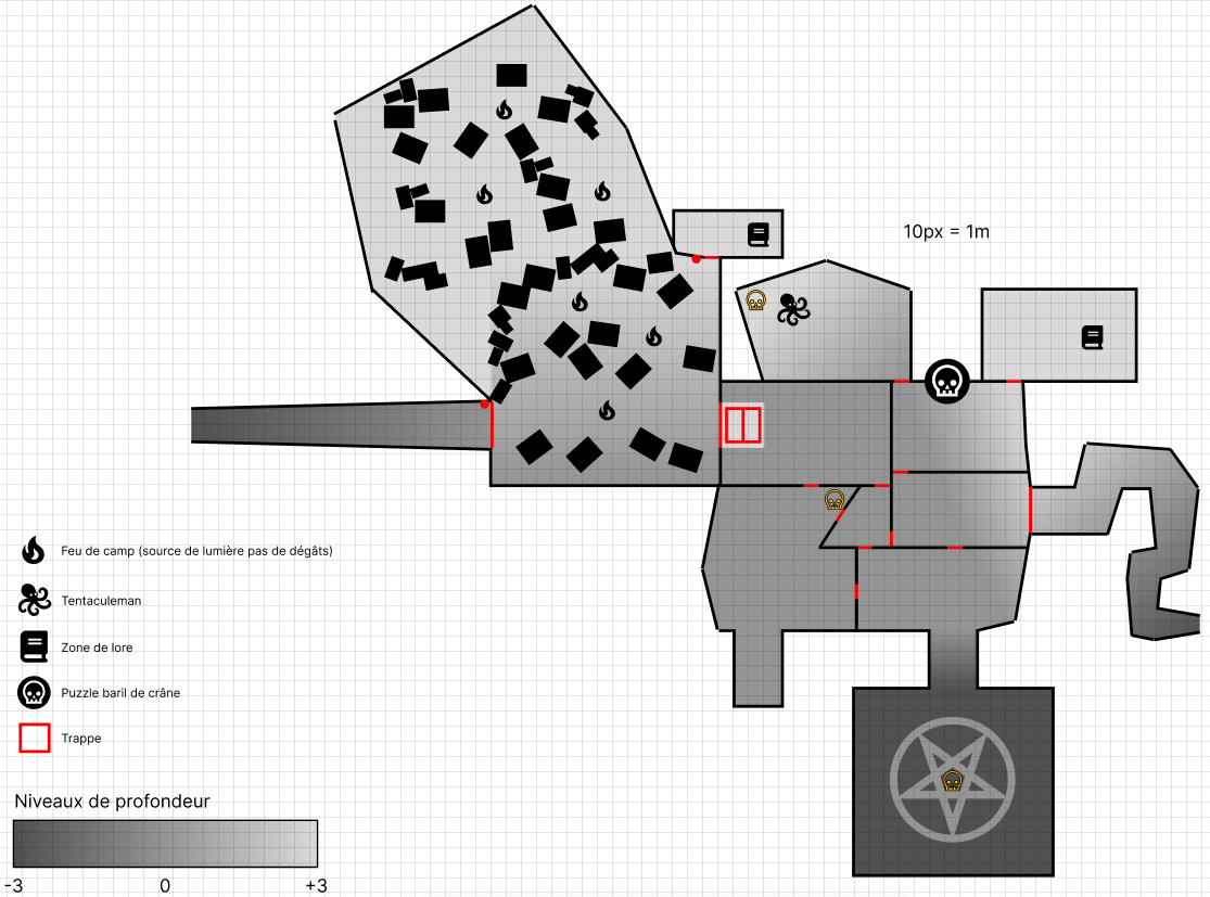 I took over my friend's work on level design and changed the map according to our teacher's feedback. More verticality, less corridors between rooms and a small maze to allow our monster to roam more freely.